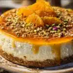 Pour sublimer votre cheesecake, n’hésitez pas à le présenter sur un plat en porcelaine, garni de pistaches hachées, de fleurs comestibles, et d’un zeste d’orange. Pourquoi ne pas l’accompagner d’une tasse de thé à la menthe ou d’un café doux ? Cela fait une belle touche finale et crée une atmosphère conviviale.
