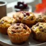 Ces muffins s’améliorent à chaque bouchée et peuvent être accompagnés d’un yaourt nature ou d’une cuillère de beurre d’amande. Servez-les avec une tasse de thé chaud ou un verre de jus frais pour un petit-déjeuner complet et équilibré.