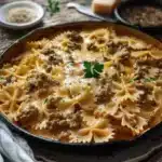 Pâtes Papillon Crémeuses et Savoureuses au Bœuf