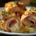 Un plat réconfortant de poulet farci au jambon et au fromage, croustillant à l’extérieur et moelleux à l’intérieur.