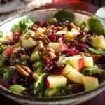 Une salade colorée et croquante qui combine des pommes acidulées, des canneberges juteuses et des noix savoureuses, parfaite pour n’importe quel repas.